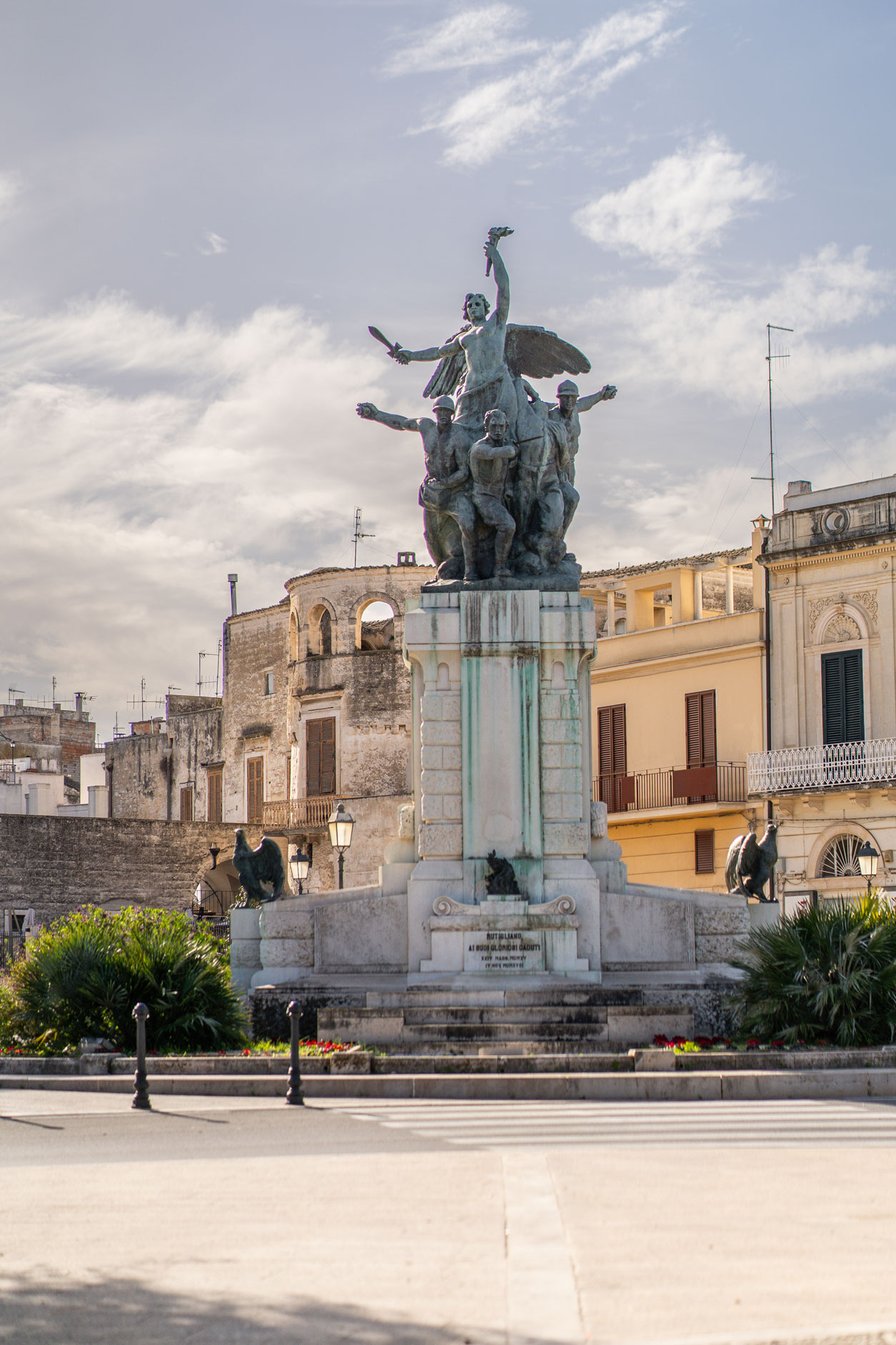 Il Monumento ai Caduti di Rutigliano è un emblema significativo del ricordo e dell’onore reso ai soldati che hanno sacrificato le loro vite durante la prima guerra mondiale. La scelta di Vitantonio De Bellis, un figlio illustre di Rutigliano, come scultore e la sua carica come ragioniere generale dello stato conferiscono al monumento un valore sia artistico che storico. Passeggiando per le strette vie, si possono ammirare gli ex palazzi nobiliari con le facciate ornate da balconi e portali in pietra, conventi e chiese di diverse epoche, dal romanico al barocco, che testimoniano la ricchezza artistica e culturale del luogo.